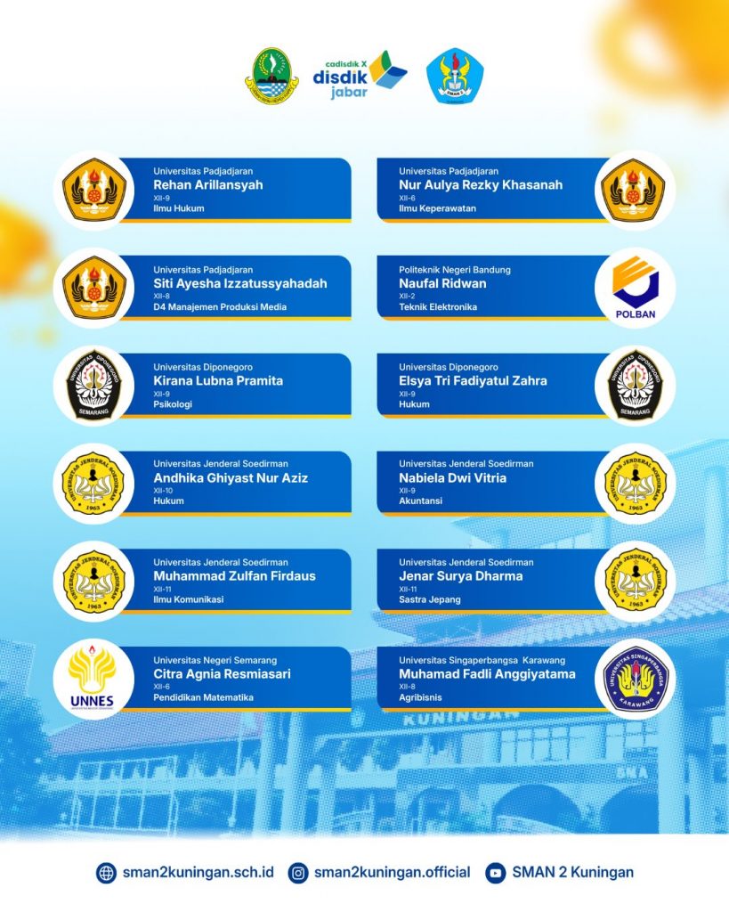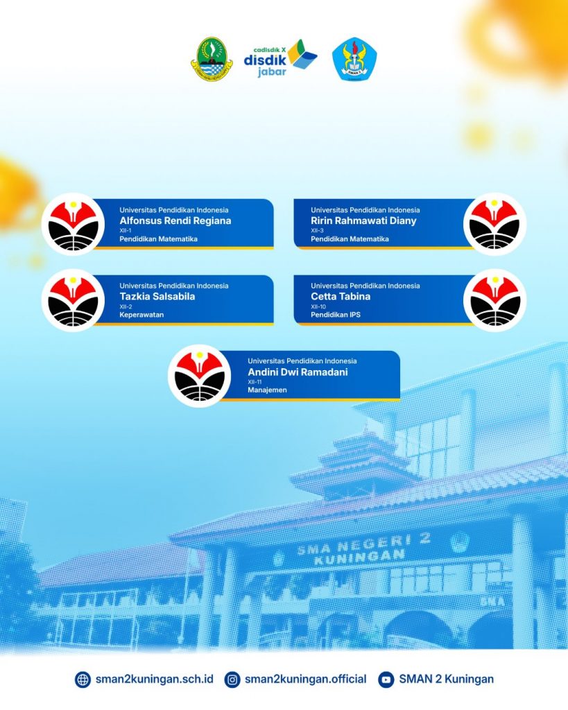 Ujung dari Pendidikan Di SMA adalah siswa siswi dapat melanjutkan ke jenjang yang lebih tinggi lagi. Melanjutkan pendidikan di Perguran Tinggi Negeri yang tersebar di seluruh Indonesia merupakan tujuan dari seluruh siswa SMAN 2 Kuningan.